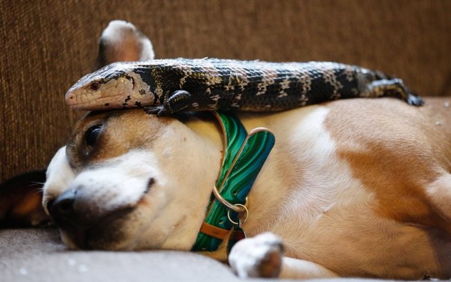 Ter mais de um animal de estimação pode ser algo complicado. Nem sempre a adaptação entre os dois vai ser pacífica. Felizmente, não foi isso que aconteceu entre Skye, uma cadela resgatada, e George, um lagarto. Depois que se conheceram, os dois nunca mais se separaram: eles até dormem com o mesmo cobertor.