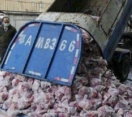 Imagens postadas na rede social Weibo (semelhante chinês ao Twitter) provocaram indignação. Nelas, um caminhão de coleta de lixo despeja cerca de mil sacos contendo carne de porco em área de Wuhan (China). Os agraciados com a oferta do governo local são moradores em quarentena por causa do novo coronavírus. Wuhan é o epicentro da pandemia mundial de Covid-19, como é conhecida a doença provocada pelo coronavírus. Informações do Extra.