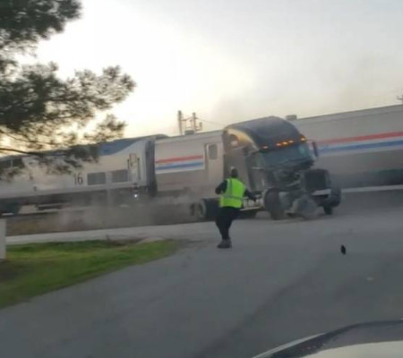 Não é preciso esperar muito tempo para ver o acidente: em questão de segundos, o trem passa e se choca contra a parte traseira do veículo, fazendo-o girar e quase acertar um homem que estava por perto.