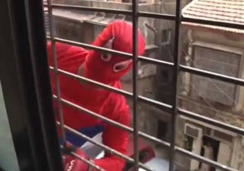 Quando os moradores de Maharashtra, na Índia, se dão conta, tem um maluco pendurado em suas janelas pedindo pra votar nele na próxima eleição parlamentar, que vai acontecer em duas semanas.