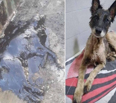 Uma equipe de resgate da ONG Proyecto 4 Patas conduziu uma operação que durou 9 horas para salvar um cão coberto de piche em Merlo, cidade na Grande Buenos Aires (Argentina). Não se sabe se o cão caiu em um reservatório de piche ou se a substância, usava para asfaltamento, foi jogada sobre ele deliberadamente. As informações são do Extra.