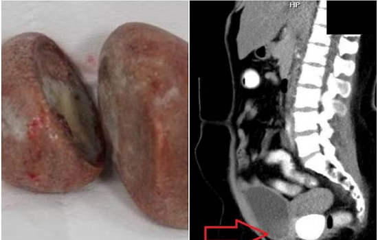Medindo 3,6cm por 5cm e 5cm por 5,8cm, as pedras retiradas eram do tamanho de duas bolas de pingue-pongue. Uma estava presa à parede da bexiga, enquanto a outro estava presa à parede do reto.