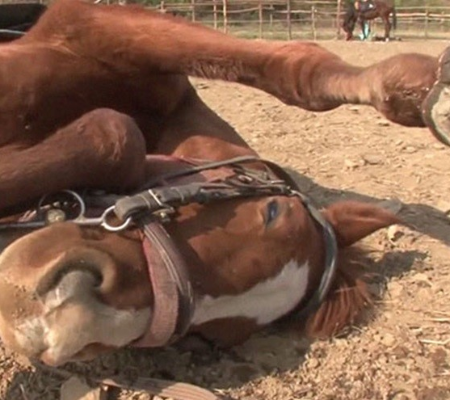 Em um rancho localizado na Coréia do Sul vive Jingang, um cavalo para lá de esperto e que não gosta nem um pouco de fazer esforços físicos. Ele foi flagrado se fingindo de morto após tentarem montar nele. Não, você não leu errado! Esse astuto cavalo usa a tática de maneira muito teatral para que ninguém consiga montar nele.