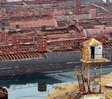 Cemitério de submarinos na Rússia ameaça explodir