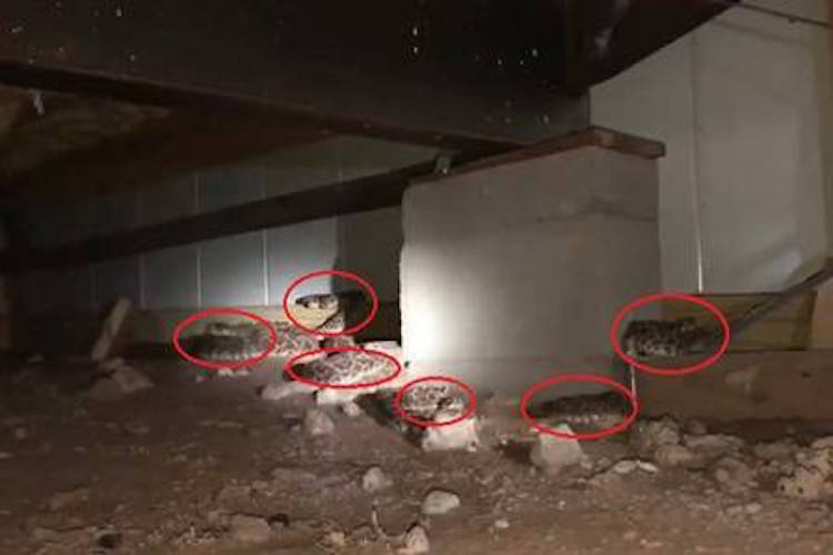 Uma empresa de remoção de cobras se deparou com um caso intigrante em um dia de serviço normal: eles encontraram nada menos que 45 cascavéis escondidas nas fundações de uma casa em Albany, no Texas (EUA). O serviço, que durou algumas horas, foi prestado no último dia 13. Os moradores da residência ficaram assustados com a quantidade de cobras que foram encontradas no local.