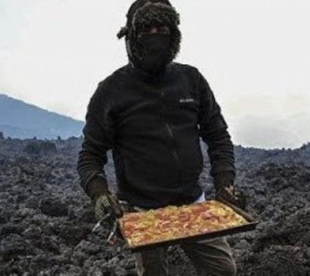 Ele uniu o espírito empreendedor com a paixão e criou pizzas que são preparadas nas pedras escaldantes do vulcão ativo em San Vicent Pacaya, no sul do país.