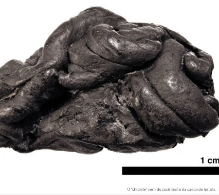 É o que comprovaram com uma estranha pedra encontrada na jazida arqueológica de Syltholm, no sul da Dinamarca. Enterrado sob uma camada de lodo que ajudou em sua preservação, os arqueólogos identificaram um pedaço de breu ou alcatrão de bétula de 5.858 a 5.660 de idade. Já no Paleolítico, os antigos humanos usavam essa resina obtida da queima da casca dessa árvore. Por sua presença nas juntas de armas e ferramentas, deviam usá-la como cola. Em várias dessas pedras negras encontradas no norte da Europa descobriram marcas de mordidas, de modo que deviam mascá-la para amolecê-la.