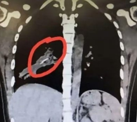 Uma chinesa de 22 anos chamou atenção de profissionais da saúde e da imprensa depois que a causa de sua tosse, que já persistia há anos, foi descoberta: um pequeno osso de galinha que foi parar dentro de seu pulmão. Informações do site Mega Curioso.
