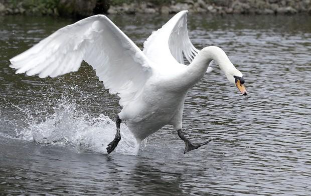 Preocupado com seu ninho, um cisne foi flagrado nos Jardins Botânicos Reais de Kew em Londres, na Inglaterra, avançando contra outros animais para que pudesse expulsá-los de seu território.