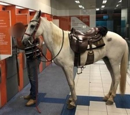 Uma cena inusitada chamou a atenção de clientes de um banco na cidade de Várzea Paulista (SP). Um cliente entrou com um cavalo em uma agência para realizar uma transação bancária. A imagem do cavalo na área dos caixas eletrônicos viralizou na internet. O animal aparece ao lado do dono, enquanto ele está no caixa eletrônico. As informações são do UOL.