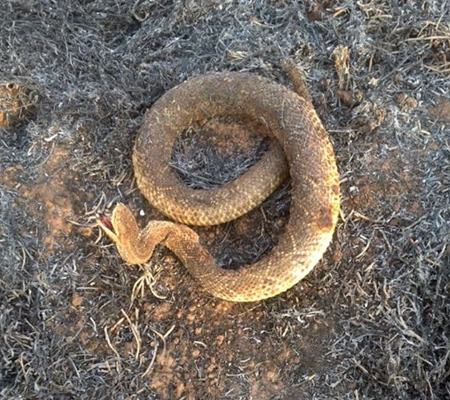 Uma cobra cascavel foi encontrada queimada pelas chamas durante o combate do Corpo de Bombeiros a uma queimada entre o bairro Alta Vila e a BR-491, em Varginha (MG). Segundo os bombeiros, os militares tiveram que ir ao local por duas vezes até que todo o fogo fosse apagado. O incêndio durou quase 24 horas. As informações são do G1.