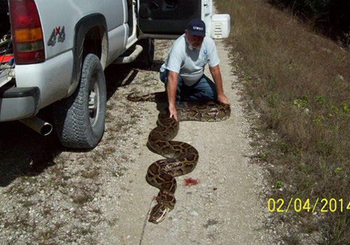 A caça da píton é permitida na Flórida, pois a espécie é considerada invasiva, o que provoca danos ao ecossistema local.