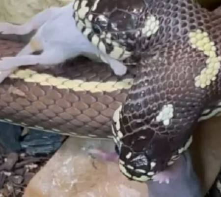 O vídeo foi publicado pelo especialista em répteis Brian Barczyk, que trabalha no zoológico, e segundo ele o animal é uma cobra real californiana com uma mutação rara. "Eu o vi como um bebê e implorei para comprá-lo por um ano e meio antes que um amigo finalmente vendesse", disse contou Brian.