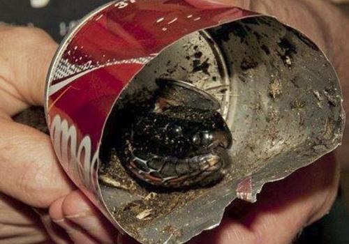 Cobra é salva após entalar cabeça dentro de uma lata de refrigerante