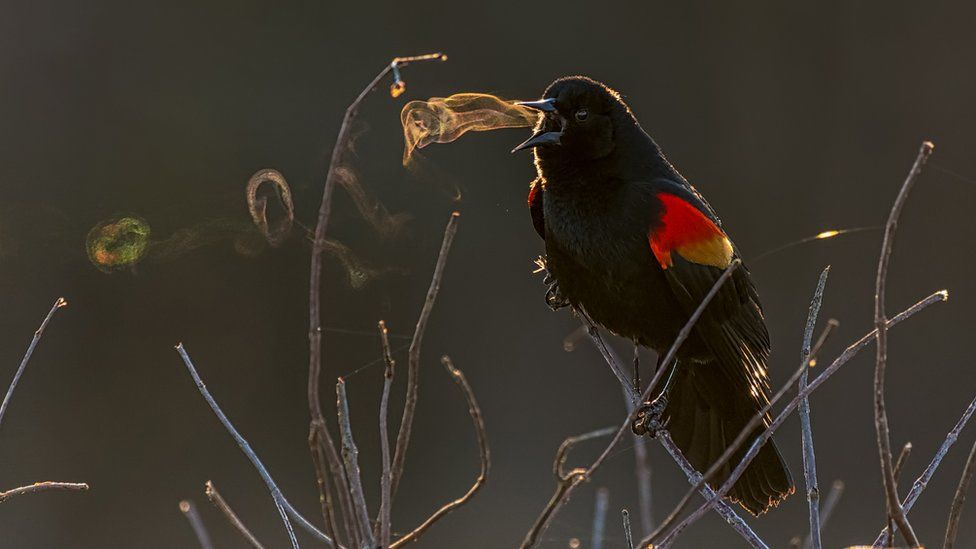 Direito de imagemKATHRIN SWOBODA/AUDUBON PHOTOGRAPHY AWARDSImage captionKathrin Swoboda foi a grande vencedora do prêmio ao fotografar um tordo-sargento em um parque perto de sua casa, na Virgínia