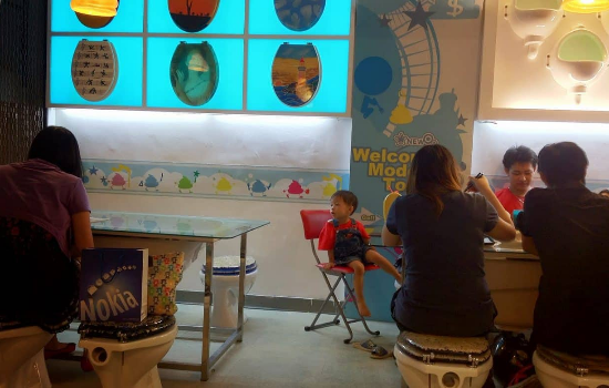 Lembra que ontem falamos sobre um museu de privadas? Bom, esse restaurante é mais ou menos parecido com isso. O estabelecimento possui três filiais em Taiwan e em todas elas os assentos são em formato de privadas. Além disso, as mesas são banheiras com um vidro por cima e os guardanapos são feitos de papel higiênico.