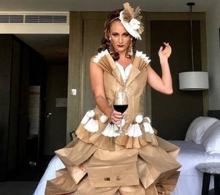 Os dias a bordo do MS Zaandam não foram fáceis. Contratada para dançar, a australiana teve que driblar a monotonia. E o fez de uma forma bem criativa. Ashleigh produziu peças de roupa fantásticas usando praticamente apenas os sacos de papel nos quais ela recebia as três refeições diárias. Os modelitos foram variados: para a noite, para o esporte, para o balé e até peças meio carnavalescas.