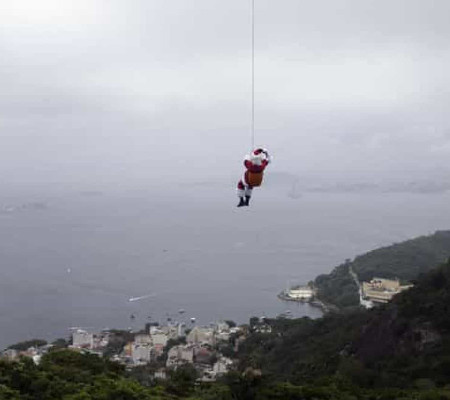 tradicional Papai Noel da cidade de Canela (RS) chegou hoje (5) ao Rio de Janeiro em grande estilo: desceu de rapel de uma altura de aproximadamente 100 metros de um bondinho entre o Pão de Açúcar e o Morro da Urca, local que ilustra cartões postais da cidade. As informações são do Notícias ao Minuto.