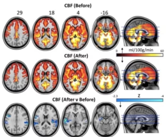 “Você sacode o cérebro, vê as coisas de uma maneira mais positiva e, em seguida, estabelece esses circuitos positivos com a neuroplasticidade”, acrescentou. “É um golpe duplo.”