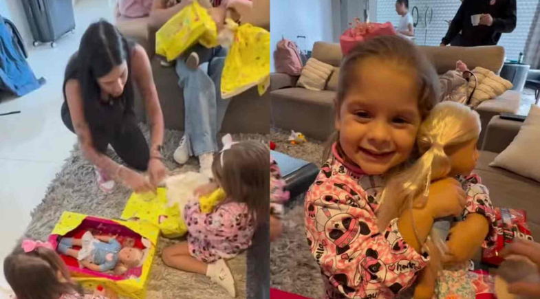 O brinquedo, que é uma boneca boiadeira, com direito a chapéu country e botas, que faz parte da coleção Our Generation e é vendida por cerca de R$ 899,99 em lojas de brinquedo. Ana ainda levou presentes para Maria Alice e José Leonardo, mas não foram mostrados nas redes sociais.