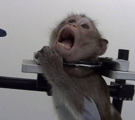 Enfureceu especialmente as organizações a situação dos macacos em Mienenbuttel. Os símios são presos a a suportes de metal em fileiras na parede, outros têm a cabeça presa e são mostrados desesperadamente tentando escapar.