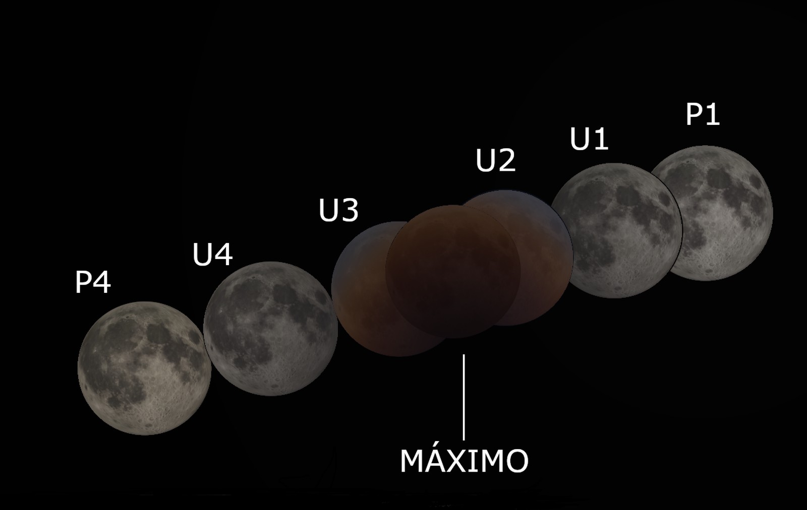 O eclipse se dá gradualmente, a Lua vai interceptar primeiro uma parte mais difusa da sombra projeta pela Terra no espaço, a chamada penumbra. Nesse estágio, principalmente no início, mal se consegue perceber que ela está obscurecida. Depois dessa fase, conhecida como penumbral, a Lua se encaminha para a parte central e mais escura da sombra chamada umbra. É nela que o eclipse propriamente dito fica evidente.