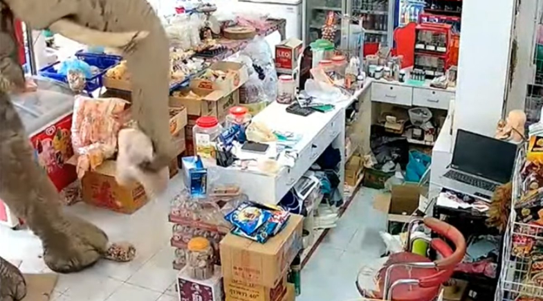 Elefante invade loja de conveniência na Tailândia e rouba lanches | Foto: Reprodução