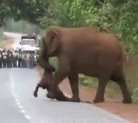 Segundo Parveen Kaswan, agente florestal indiano, os elefantes "choravam" enquanto caminhavam lentamente, contou o "Mirror". O elefante que levava o cadáver depositou o corpo no meio de uma estrada. Os outros membros da manada, cercaram o corpo do filhote, como se estivessem reverenciando o morto. Logo depois, os animais seguiram para a floresta, levando o cadáver, para a despedida final.