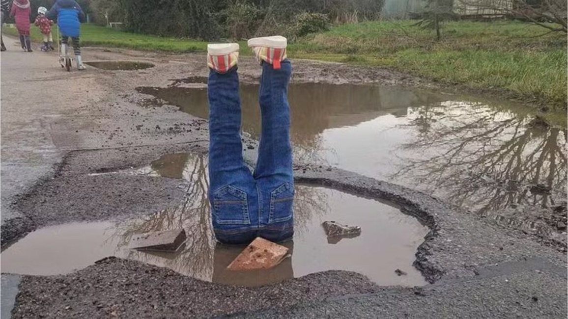 Em protesto, britânico instala pernas falsas em buraco e situação viraliza