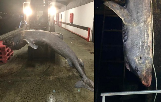 Embarcação reboca carcaça de tubarão que pode ter mais de 500 anos