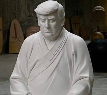 Uma empresa chinesa colocou à venda recentemente estátuas de Donald Trump em pose contemplativa de monge budista. A posição é semelhante à que é vista em estátuas de Buda em templos. As informações são do Extra.