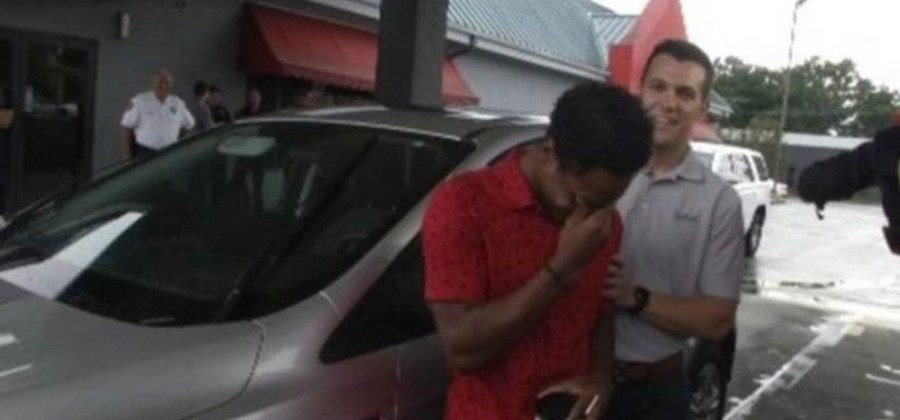 Depois de ver o post no Facebook, o CEO da empresa de mudanças chamada Bellhops, Luke Marklin, dirigiu do Tennessee até o Alabama na segunda-feira e o presenteou com um Ford Escape 2014. Tanto Lamey quanto Marklin ficaram comovidos com a história do estudante, que se mudou para a área de Birmingham de Nova Orleans depois que ele e sua mãe perderam sua casa no furacão Katrina.