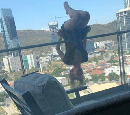 Alexa Terrazas López, de 23 anos, estava fazendo uma arriscada posição de ioga apoiada apenas com as coxas no parapeito de vidro da varanda, no oitavo andar do edifício residencial.