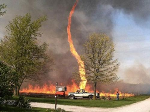 A norte-americana Janes Copelin dirigia por uma estrada na cidade de Chilicothe, no estado de Montana, no último domingo (4) quando viu um pilar de foto que partia do solo e serpenteava pelo céu. Postada na conta dela do Instagram, a foto se espalhou pela internet e logo o fenômeno foi apelidado de ?firenado? (?tornado de fogo?).