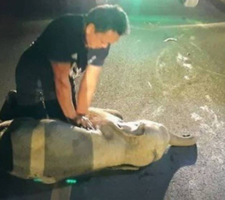 Mana acabou acionado enquanto estava de folga em uma viagem na noite de domingo (20/12), reanimando com sucesso um bebê elefante atropelado por uma motocicleta ao cruzar uma estrada com um grupo de paquidermes selvagens na província oriental de Chanthaburi (Tailândia).