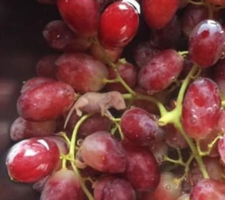 Filhote de rato no meio das uvas | Foto: Reprodução - Facebook