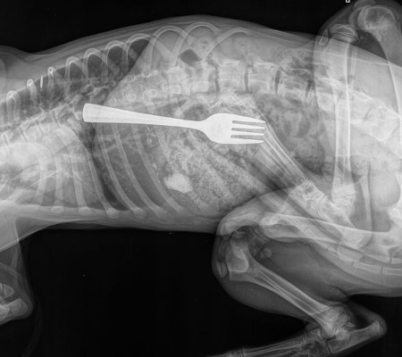 Ao noticiário, o veterinário responsável pelo caso, Matt Woodruff, afirmou que se não tivesse sido treinado para ocasiões como essas, teria achado que alguém photoshopou a imagem. “Foi uma surpresa, foi a primeira vez que vi um cão comer um utensílio”, falou.