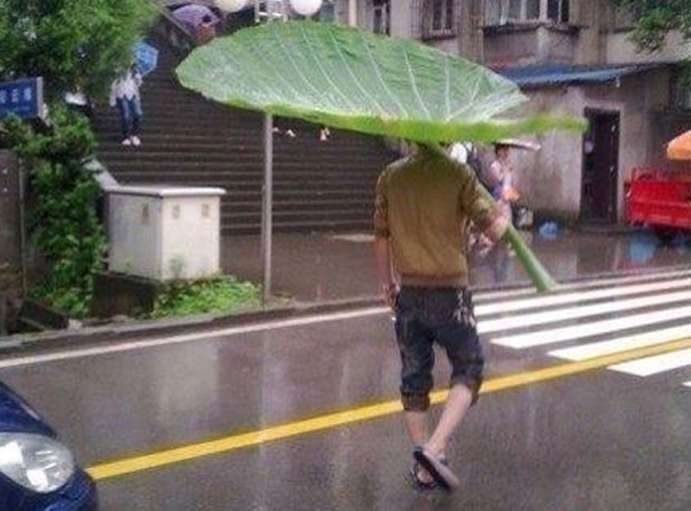 Uma foto de homem usando um "guarda-chuva natural" faz sucesso no Twitter. A imagem publicada pela usuária "Laury" mostra um jovem usando uma planta para se proteger da chuva. Postada no dia 7 de setembro, a foto foi retuítada centenas de vezes.