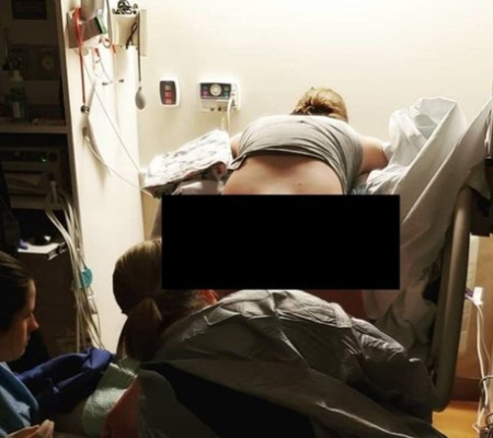 Esse fato, que é completamente normal, ficou claro em uma foto que viralizou nas redes sociais. Na imagem, é possível ver a grávida em posição para o parto normal enquanto as médicas estão esperando pelo bebê . É possível ver uma elevação em sua lombar, o que pode ser explicado pela forma como o corpo da mulher se adapta ao parto.