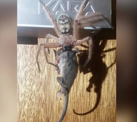 Uma foto em que uma aranha caçadora come um gambá-pigmeu viralizou após a australiana Justine Latton publicá-la em um grupo no Facebook. As informações são do G1.