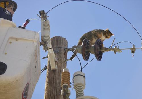 Uma equipe do Controle de Animais de Las Cruses, no estado do Novo México (EUA), conseguiu resgatar com sucesso uma gata que passou três dia presa no topo de um poste de energia.