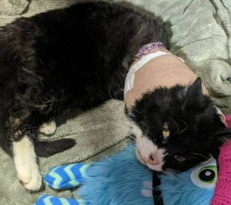 Bastante ativo e brincalhão, o gato foi encontrado em 2020 com as patas bastante feridas depois de um acidente. Mesmo sendo levado a um abrigo para ser atendido graças ao levantamento de fundos para custear o tratamento, os veterinários nada puderam fazer, tendo que amputar as patas dianteiras por conta do estado brutal que se encontravam.