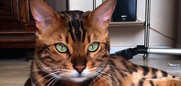 O gato, da raça bengal, possui a pelagem tão perfeita, que até a barriga tem pintas. E sim, ele é de verdade.