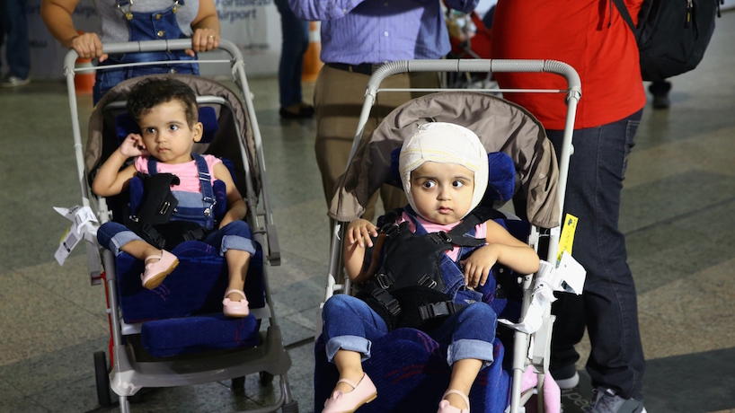 Cinco meses após a quinta cirurgia para separação das gêmeas Maria Ysadora e Maria Ysabelle, de dois anos e meio, as bebês desembarcaram no início da tarde desta sexta-feira (29), no Aeroporto Internacional Pinto Martins, em Fortaleza. Elam foram submetidas ao procedimento inédito no Brasil no dia 27 de outubro do ano passado.