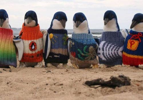 Um grupo de ativistas está convidando simpatizantes para tricotarem casacos de lãs para pinguins doentes, na Austrália. A fundação Phillip Island?s Penguin ajuda animais que foram afetados por derramamentos de óleo ou vazamentos similares de barcos de pesca.