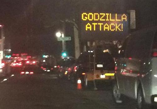 Hackers pregaram uma peça em motoristas de São Francisco, na Califórnia (EUA) ao trocarem a mensagem de um painel de aviso pela mensagem ?Godzilla Attack? (Ataque de Godzilla, em tradução livre).
