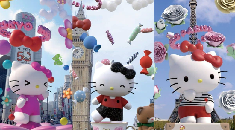 No Japão, na Malásia e na China, a Sanrio possui parques dedicados à Hello Kitty e sua turma. No mundo, existem lojas, hotéis, cafés, SPAs, karaokês, avião, trem-bala e até maternidade com ala de tema da personagem. A licenciadora atua em mais de 10 países e um escritório na capital paulista.