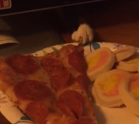 O vídeo de um gato roubando um pedaço de pizza do prato da dona fez suacesso em um grupo no Facebook. A filmagem mostra o animal se escondendo atrás de uma tela de computador e esticando a pata para alcançar o prato em cima do mesa. Depois de duas tentativas, o bichano consegue alcançar seu objetivo.