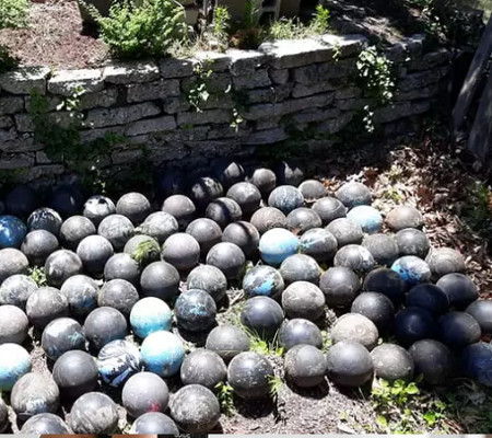 Olson disse que Brunswick confirmou que não havia perigo e o fez tirar fotos. Algumas bolas tinham números de série e gravuras que datavam da década de 1950, mesmo período em que a casa de Olson foi construída. No entanto, não está claro quando foram colocados sob a casa.