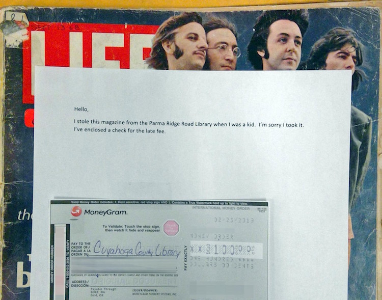 A direção da biblioteca afirmou que recebeu esta semana a revista, um exemplar da "Life", junto com um cheque relativo à "multa" e um pedido de desculpas.